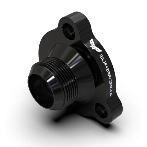 This water inlet thermostat housing for Nissan RB (RB20, RB25, RB26, RB30…) is threaded to accommodate any AN-20 female fitting. Ideal in conjunction with a custom cooling system, it fits without modification to the engine block and retains the use of the OEM thermostat.